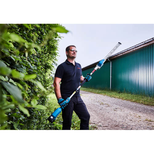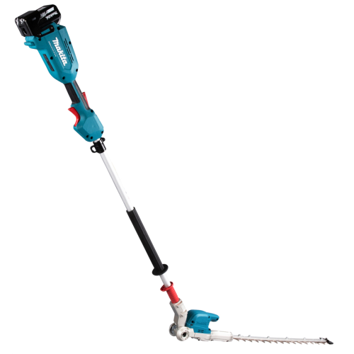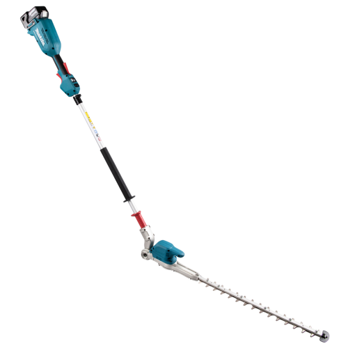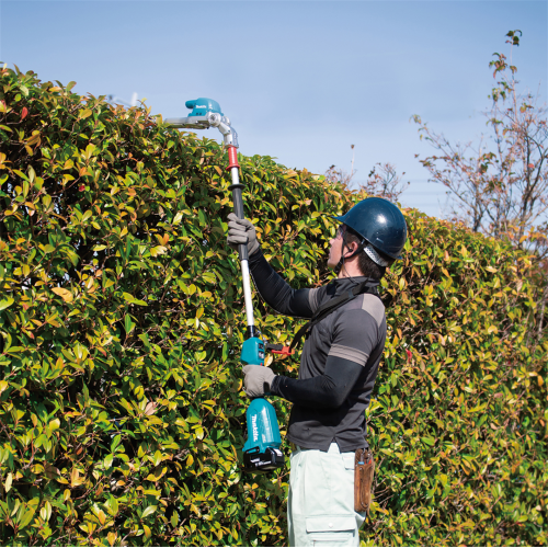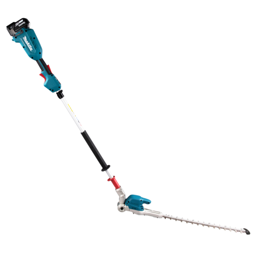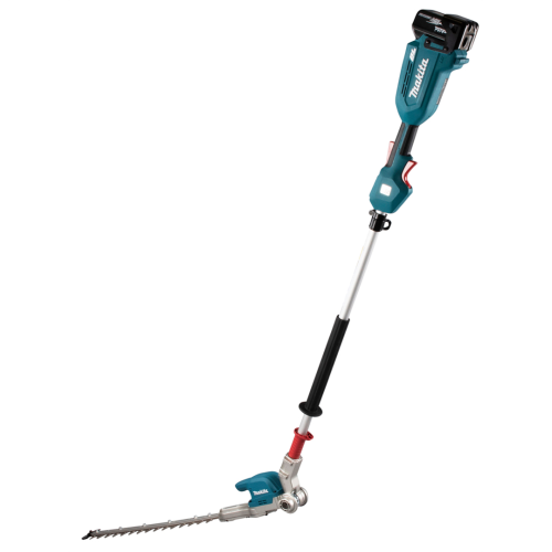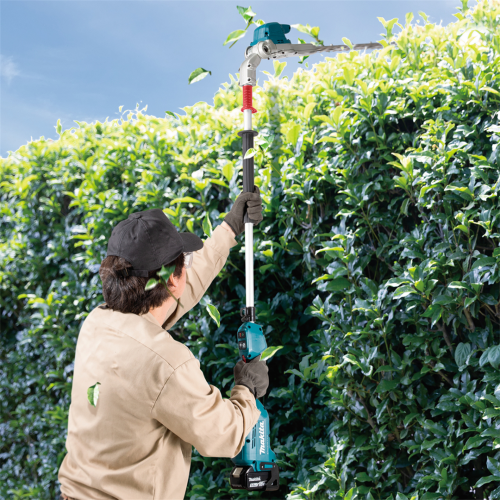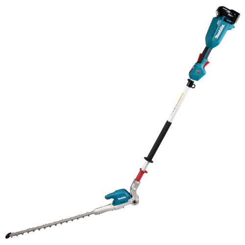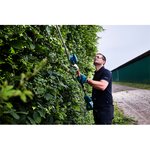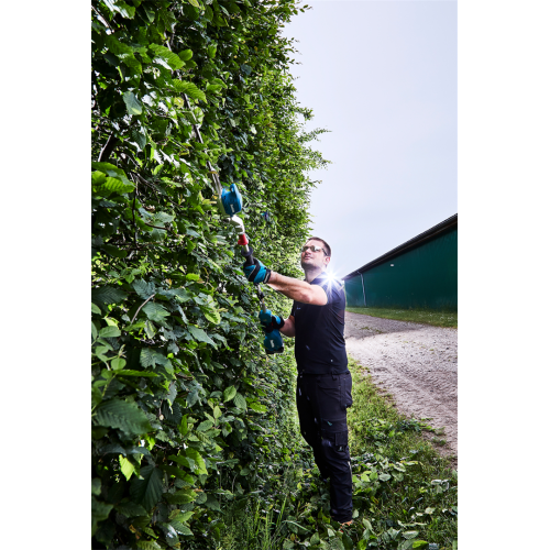 Akumulatorowe nożyce do żywopłotu 18V Makita DUN500WZ nadają się do przycinania każdego typu żywopłotu zarówno na niskim poziomie jak i na wysokości, dzięki długiemu zasięgowi ostrza. Mocny i wydajny silnik bezszczotkowy 18V, zapewnia wysoką efektywność podczas pracy oraz długą żywotność silnika. Nożyce posiadają 6 stopniową regulację ustawienia kąta głowicy tnącej oraz 3-stopniowa elektroniczna kontrola częstotliwości skoków. Przycisk obrotów wstecznych powoduje pozwala na uwolnienie ostrza zablokowanego w gałęzi. Nożyce zapewniają dodatkowe bezpieczeństwo podczas pracy - zabezpieczenie wyłączające urządzenie w momencie przypadkowego poluzowania się głowicy. Urządzenie wykonane zostało z mocnych i trwałych materiałów przy zachowaniu lekkiej i ergonomicznej konstrukcji. Nożyce do żywopłotu posiadają dodatkową odporność na szkodliwe działanie pyłu i wilgoci.
