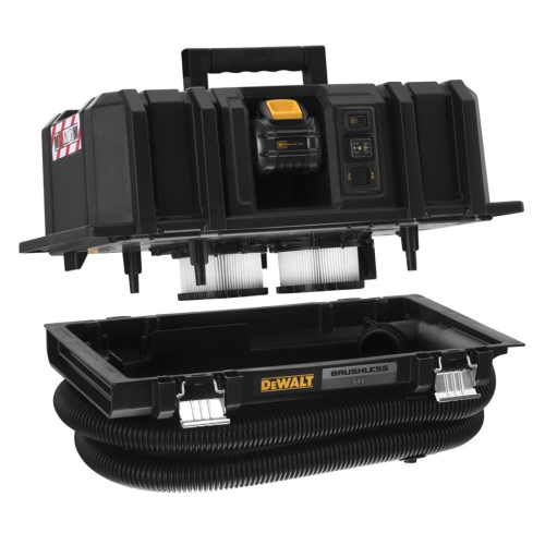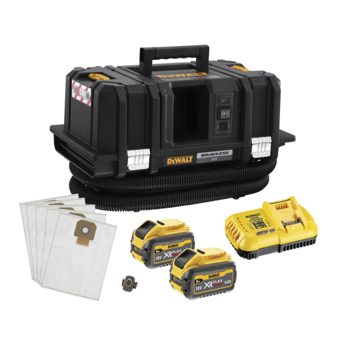 Akumulatorowy odkurzacz przemysłowy DCV586MT2 DeWALT z silnikiem bezszczotkowym pracującym w napięciu 54V zapewnia wysokie podciśnienie i niemały przepływ powietrza. Parametry ssania i automatycznie czyszczący się filtr klasy M idealnie sprawdzają się do oczyszczania miejsca pracy z pyłów cementowych i drewnianych oraz prac sprzątających w warsztacie i u klienta. Szereg funkcji usprawnia użytkowanie, a praktyczna konstrukcja kompatybilna z systemem T-STAK jest łatwa w transportowaniu i przechowywaniu. Dodatkowo praca bezprzewodowa nie ogranicza pola pracy, przez co bezprzewodowy odkurzacz jest doskonałym sprzętem interwencyjnym. Możliwość zasysania cieczy daje bardzo duży zakres prac i elastyczność. Kompletacja z szybką ładowarką i dwoma akumulatorami 2.0Ah dla napięcia 54V.