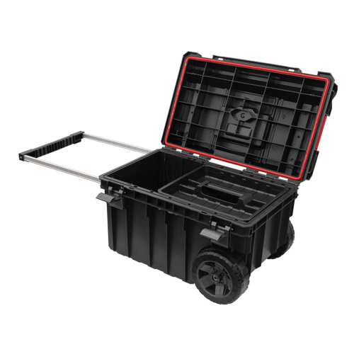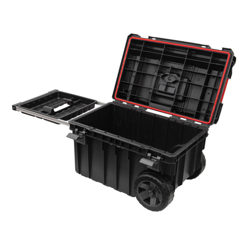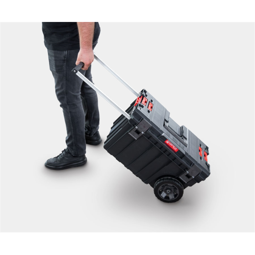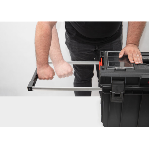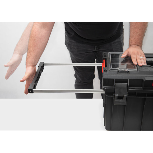 Skrzynia Kołowa ONE Trolley Vario Qbrick System SKRWQONETVCZAPG001 jest odpowiedzią na potrzebę użytkowników transportowania skrzynek na kufrach kołowych typu Longer. Trolley to w istocie zmodyfikowana "trzystapiędziesiątka", której pojemność cieszyła się największym uznaniem fachowców. Nowy mobilny kufer został wyposażony w tackę narzędziową o dużej powierzchni i małej głębokości, co pozostawia dużo przestrzeni pakowej. Wysuwana rama z prostym mechanizmem blokady gwarantuje stabilne prowadzenie zarówno w przód jak i do tyłu. Blokada poprzez lekkie puknięcie jest tym skuteczniejsza im bardziej obciążona jest skrzynia o maksymalnej nośności 50kg. Wysunięta rączka to również stabilne miejsce na na tackę, dzięki czemu znika dylemat gdzie ją odłożyć, kiedy chcemy dostać się do narzędzi pod tacą. Solidne koła znane z pozostałych modeli i Systemów Qbricka gwarantuje stabilność nawet na grząskim gruncie. Wersja z pokrywą VARIO doskonale komponuje się z popularną skrzynką serwisową PRO600 lub z szeroką gamą skrzynek QS PRO.