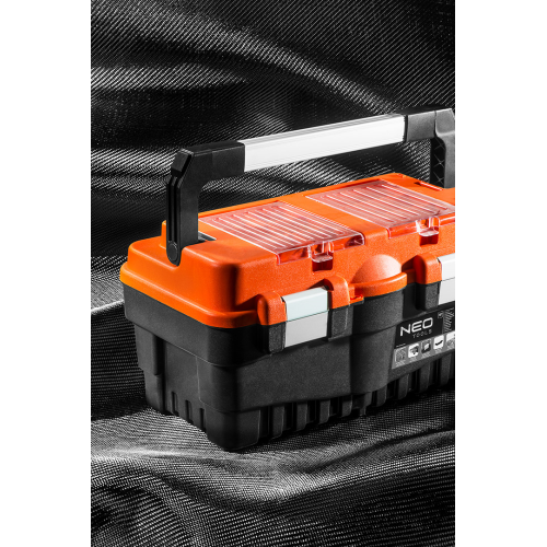 Skrzynka narzędziowa 18" NEO 84-102 to praktyczny sposób na przechowywanie wielu narzędzi w jednym miejscu. Jest solidna i wytrzymała dzięki wykonaniu z tworzywa sztucznego.