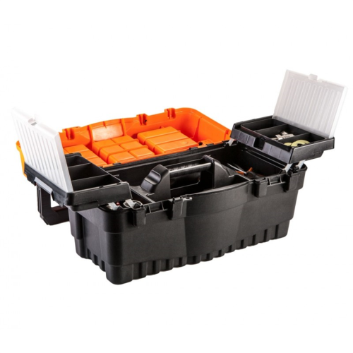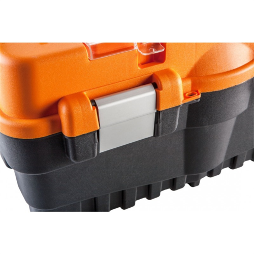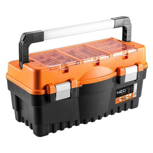 Skrzynka narzędziowa 21" NEO 84-102 pozwoli na bezpieczne przechowywanie narzędzi. Zgromadzenie ich w jednym miejscu pozwala na szybkie dotarcie do potrzebnego narzędzia. Została wykonana z tworzywa sztucznego z aluminiowymi zatrzaskami.