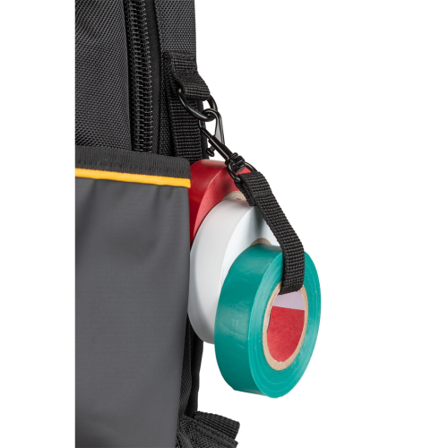 - 43 kieszenie, w tym dedykowane miejsce na wiertarkę, akumulatory, butelkę oraz długie narzędzia, pozwalają na idealne rozplanowanie przenoszonego wyposażenia.