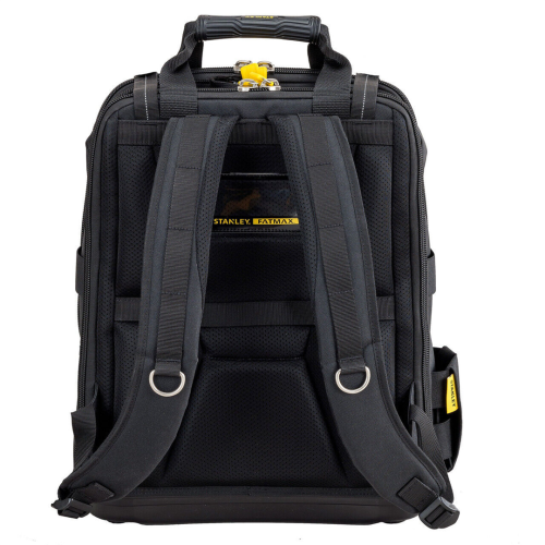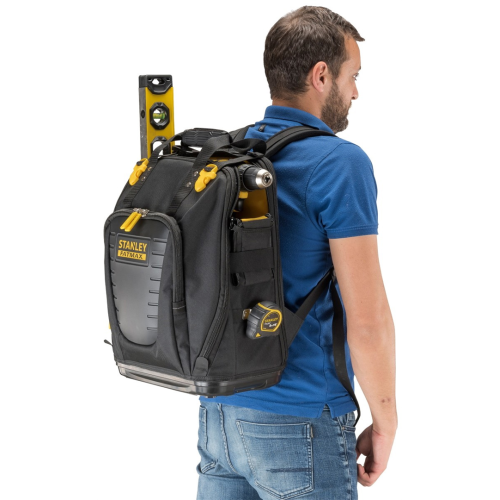 Plecak narzędziowy Fatmax Quick Access Stanley FMST1-80144 posiada 4 przegródki, dzięki czemu doskonale sprawdza się również jako stanowisko pracy. Wykonanie z mocnego materiału nylonowego zapewnia plecakowi wysoką wytrzymałość. Duża otwarta komora zapewnia szybki dostęp i pozwala przechowywać dłuższe narzędzia. Dzięki licznym kieszeniom i uchwytom narzędziowym operator jest w stanie przenosić wiele elementów jednocześnie. Plastikowy spód chroni narzędzia i osprzęt przed wilgocią, zwiększając tym samym ich żywotność. Wyściełane szelki i plecy z siateczką powietrzną sprawiają, że przenoszenie plecaka jest bardzo wygodne. Dzięki specjalnemu schowkowi operator może bezpiecznie przenosić portfel, klucze czy telefon komórkowy.