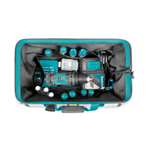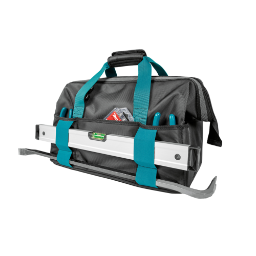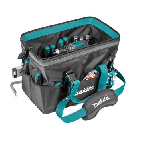 Przechowywanie i transport niezbędnych narzędzi oraz akcesoriów jeszcze nigdy nie był łatwiejszy! Torba narzędziowa Makita E-15431 o pojemności 26 l to niezastąpiona pomoc w organizacji pracy profesjonalisty oraz domowego majsterkowicza. W centralnej części znajdują się zamykane na zamek błyskawiczny przegródki różnej wielkości. Najpotrzebniejsze z przyrządów można natomiast przechowywać w tych zewnętrznych, do których dostęp jest jeszcze łatwiejszy. Torbę można nosić za rączki lub na ramieniu dla większej wygody.