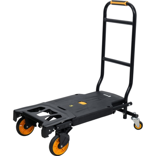 Składany wózek magazynowy Vorel 78663 przeznaczony jest do wygodnego przewożenia elementów o dużym ciężarze. Dzięki możliwości rozłożenia podstawy użytkownik może dostosować jego rozmiar do wymiaru transportowanego przedmiotu.