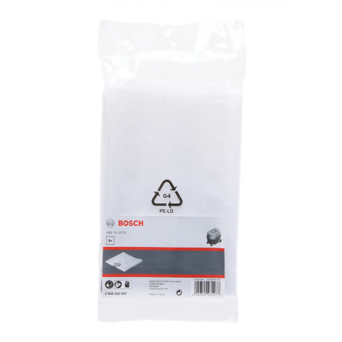 Worek polietylenowy Bosch 2608000697 pasuje do odkurzacza Bosch GAS 12-25 PL. Worek jest jednorazowego użytku. W opakowaniu znajduje się 5 sztuk.