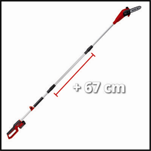 Akumulatorowa pilarka łańcuchowa Einhell GC-LC 18/20 Li T-Solo to nowoczesne urządzenie idealne do przycinania żywopłotu i innych prac porządkowych na działce lub w ogrodzie. Dzięki funkcjonalnej teleskopowej konstrukcji to narzędzie stworzona z myślą o wygodnym i efektywnym cięciu wysokich krzewów. Mając prezentowany sprzęt pod ręką, z łatwością dotrzesz do wszystkich trudnodostępnych miejsc bez konieczności korzystania z drabiny. Urządzanie należy do systemu Power X-Change, dzięki czemu jest kompatybilne z każdym akumulatorem i ładowarką z tej serii.