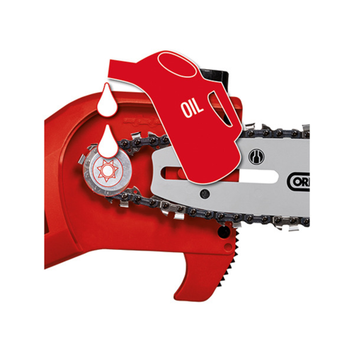 Piła wyposażona jest w wysokiej jakości prowadnicę i łańcuch marki OREGON, światowego lidera w produkcji narzędzi tnących. Ergonomiczny uchwyt z gumowaną powierzchnią oraz regulowany pasek do noszenia sprawiają, że praca z urządzeniem jest niezwykle wygodna. Ponadto urządzenie wykorzystuje system automatycznego smarowania łańcucha ze zbiornika o pojemności 70 ml dla zapewnienia maksymalnej żywotności.