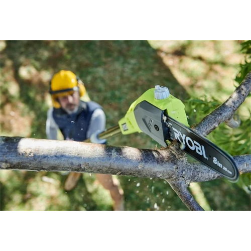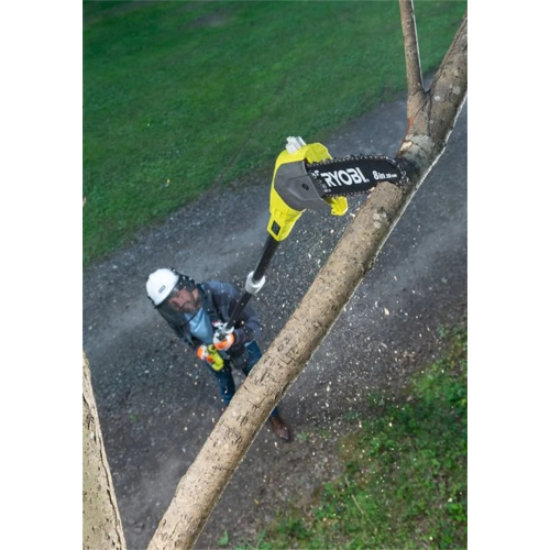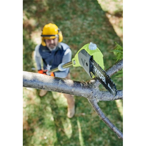Piła łańcuchowa na wysięgniku OPP1820 Ryobi umożliwia skuteczne oraz szybkie cięcie gałęzi w wyższych partiach drzew (jej zasięg pracy wynosi 3 m). Dzięki zasilaniu akumulatorem można nią wygodnie pracować w dowolnym zakątku ogrodu czy sadu.