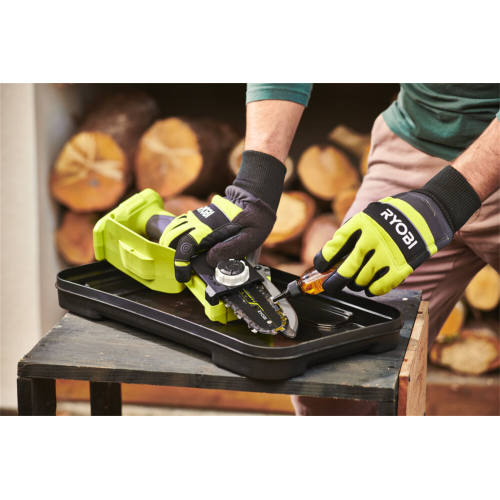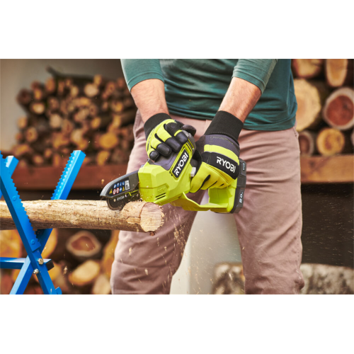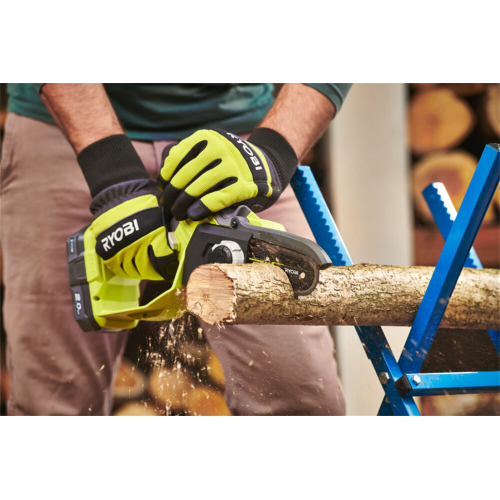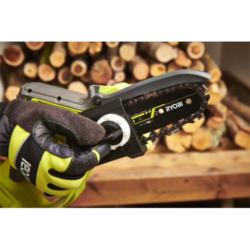 Pilarka łańcuchowa akumulatorowa RY18PSX10A-0 Ryobi 5133005433 jest przeznaczona do cięcia gałęzi, pni i belek drewnianych. Maksymalna szerokość piłowania urządzenia wynosi 9,5 cm. Piła sprawdzi się w przydomowych zastosowaniach. Posiada wydajny silnik bezszczotkowy. Jest narzędziem z serii ONE+, dzięki czemu może być zasilana dowolnym akumulatorem 18V z tego systemu.