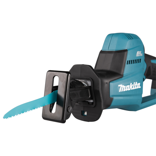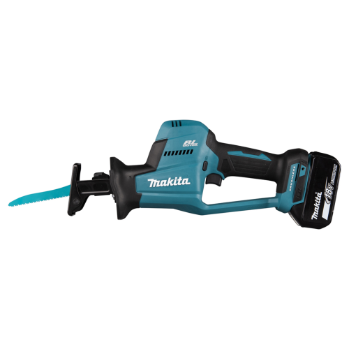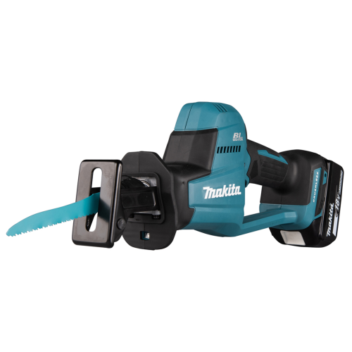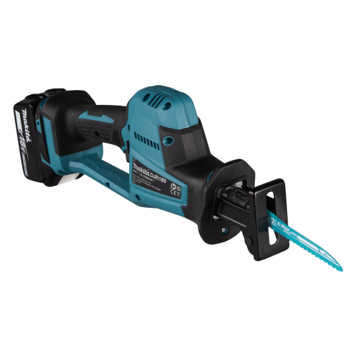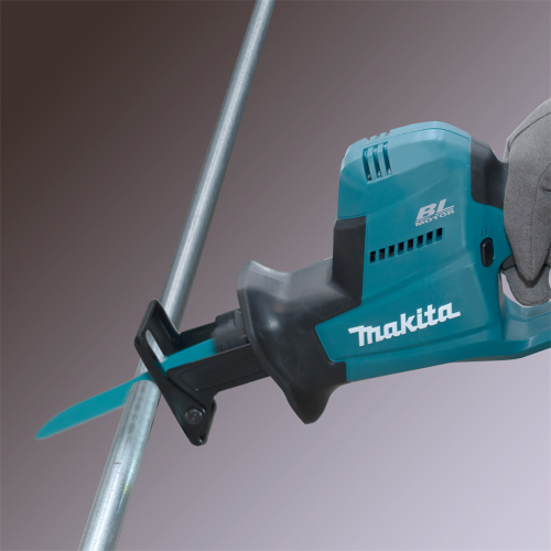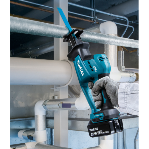 Akumulatorowa piła szablasta DJR189RTJ Makita to poręczne wydajne elektronarzędzie z silnikiem bezszczotkowym, które umożliwia sprawne cięcie drewna, metalu i tworzyw sztucznych, w zależności od zastosowanego brzeszczotu. Dzięki beznarzędziowej wymianie ostrza przygotowanie piły do danego zadania jest szybkie i proste. Piła akumulatorowa o kompaktowej konstrukcji świetnie sprawdzi się podczas pracy w trudno dostępnych miejscach. Narzędzie posiada blokadę zapobiegającą przypadkowemu włączeniu, hamulec elektryczny oraz diodę LED z funkcją opóźnionego wygaszania. Obudowa elektronarzędzia została opracowana w technologii XPT, co świadczy o jej zwiększonej odporności na pył i wilgoć. Model DJR189 należy do serii urządzeń akumulatorowych Makita zasilanych akumulatorem 18V LXT.