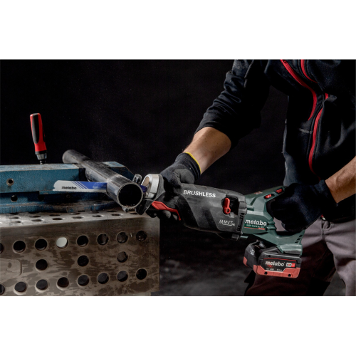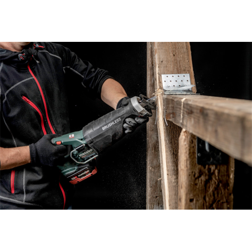 Pilarka szablasta SSEP 18 LTX BL MVT Metabo 602258840 z niezawodnym silnikiem bezszczotkowym dla większych możliwości eksploatacyjnych. Wbudowana elektronika Vario pozwala regulować częstotliwość skoków w zależności od wykonywanego zadania. Optymalną wydajność cięcia zapewnia funkcja uruchomienia skoku wahadłowego. Metabo Quick wprowadza możliwość szybkiej, beznarzędziowej wymiany elementu roboczego, co wprowadza oszczędność czasu. Metabo VibraTech kompensuje masę, redukując jednocześnie wibracje, zwiększając wygodę prowadzenie działań. Ogranicznik głębokości można beznarzędziowo regulować, usprawniając wykonywanie różnego rodzaju zadań, np. cięć wgłębnych o różnej głębokości. Wbudowana dioda LED pozwala pracować w ciemnościach. Praktyczny hak z zatrzaskiem sprawia, że narzędzie można wygodnie przechowywać po zakończeniu pracy. Kompatybilność z akumulatorami 18V i ładowarkami marek CAS podkreśla uniwersalność.