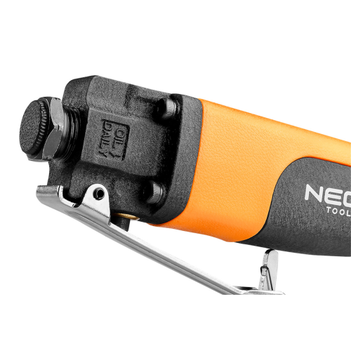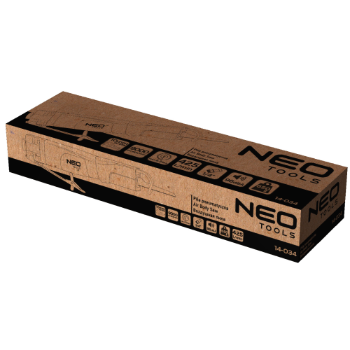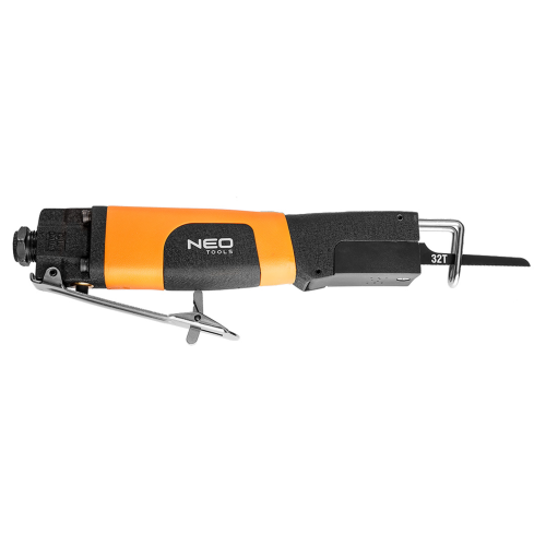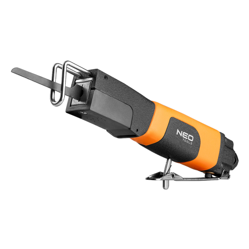 Piła czołowa pneumatyczna 14-034 marki NEO to bardzo poręczna maszyna o wyjątkowych osiągach. Zastosowanie silnika pneumatycznego znacznie zmniejszyło masę i gabaryty urządzenia. Jednocześnie maszyna ma wyjątkowo duży skok brzeszczotu i sporą częstotliwość posuwu ostrza. poziom hałasy przy tak intensywniej pracy nie przekracza 96 decybeli. Lisi ogon sprawdzi się w warsztatach do ciecia blach, stali, drewnianych konstrukcji i wszelakich tworzyw sztucznych.