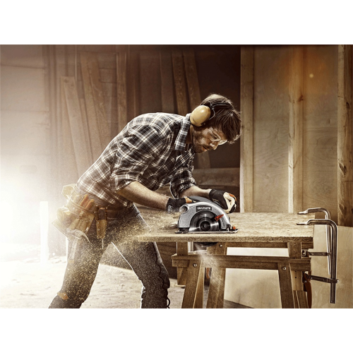 • Beznarzędziowa regulacja kąta oraz głębokości cięcia usprawnia pracę (w sterowaniu parametrami pomaga specjalna podziałka)