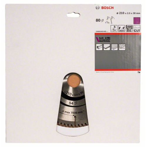 Tarcza pilarska Multi Material Bosch 2608640445 to wysokiej jakości osprzęt przeznaczony do cięcia drewna i materiałów drewnopochodnych, żywic epoksydowych, aluminium, stopów i miedzi. Jest przeznaczona do stosowania z pilarkami stołowymi i ukośnicami.