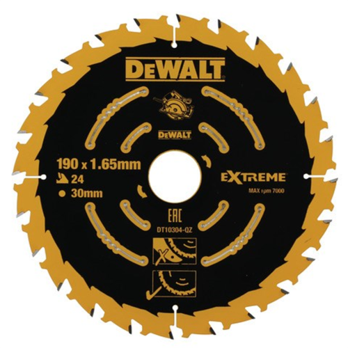 Piła zębata Extreme DeWalt DT10304 jest przeznaczona do cięcia różnych materiałów, w tym płyt z cementu włóknistego, podłóg laminowanych/prefabrykowanych i MDF. Tarcza cechuje się wysoką trwałością. Posiada zęby z weglika spiekanego, który zapewnia długą żywotność i wytrzymałość. Ponadto szczeliny w korpusie tłumią wibracje, poprawiają wydajność cięcia i komfort pracy, a także redukują hałas.