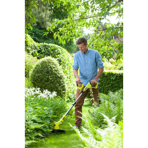 Akumulatorowa podkaszarka RLT183225F Ryobi 5133003709 wyróżnia się możliwością ustawienia szerokości koszenia od 25cm do 30cm, a automatyczny wysuw samodzielnie pilnuje wybranej długości żyłki. Dzięki temu koszenie może odbywać się w bardziej ekonomiczny i energooszczędny sposób lub z maksymalnymi osiągami. Zasilanie akumulatorowe zapewnia dużą mobilność, a bateria umieszczona w tylnej części rękojeści, poprawia wyważenie całego urządzenia. Kolejnym czynnikiem zwiększającym ergonomię jest drążek teleskopowy z umieszczoną na nim rękojeścią pomocniczą. Oba regulowane elementy dają możliwość dobrania takich ustawień, aby były maksymalnie komfortowe dla operatora. Ponadto cała głowica może zostać ustawiona pod trzema różnymi kątami, a system Easy Edge pozwala błyskawicznie przejść z podkaszania do trybu pionowego strzyżenia krawędzi trawnika. Wykaszarka RLT1832 w kompletacji 25F zawiera akumulator z linii ONE+ o pojemności 2.5Ah. Maszyna, ładowarka i akumulator są kompatybilne z szeroką gamą produktów bateryjnych Ryobi 18V.
