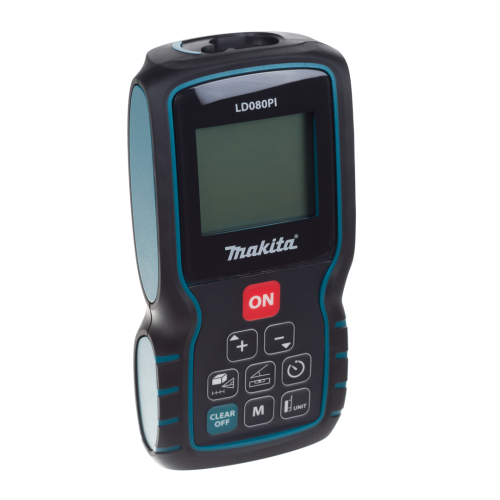Miernik laserowy Makita LD080PI jest to urządzenie przeznaczone do pomiaru odległości i kąta pochylenia, obliczania powierzchni oraz objętości. Jasne menu pozwala na intuicyjną, sprawną obsługę. Wyposażony jest w duży wyświetlacz, który zapewnia komfortowy odczyt. Zapamiętuje 20 ostatnich pomiarów. Wysokiej jakości wiązka lasera gwarantuje doskonałą widoczność. Stopka odniesienia z automatyczną detekcją pozwala na prowadzenie rzetelnych pomiarów z narożników lub z obrzeży. Wyposażony jest w funkcję poziomowania, co oszczędza czas, Specjalna okładzina zapobiega ślizganiu się miernika po powierzchni i pozwala na pracę bez statywu.