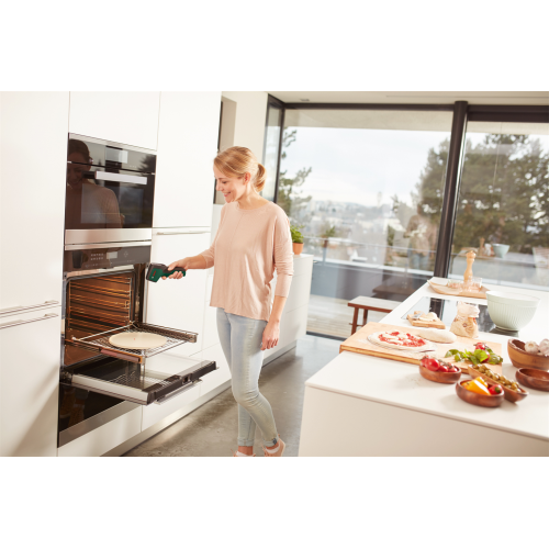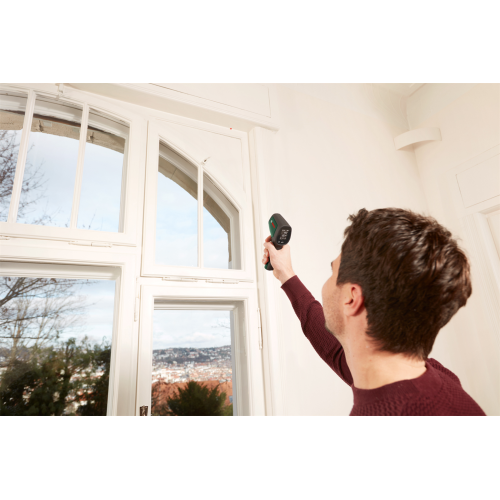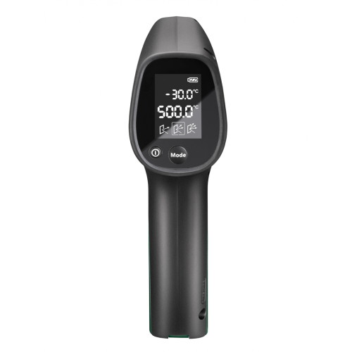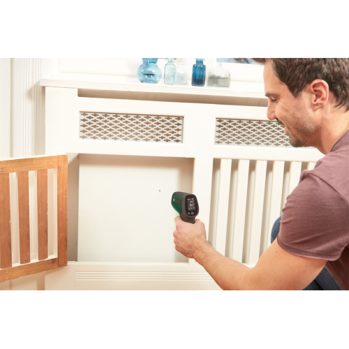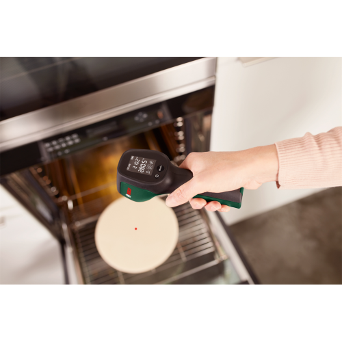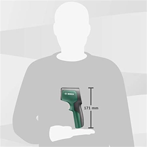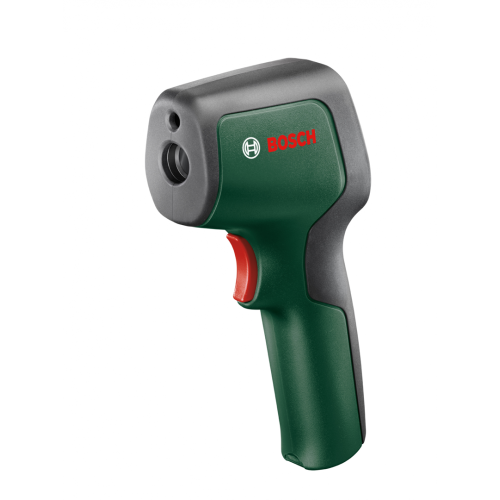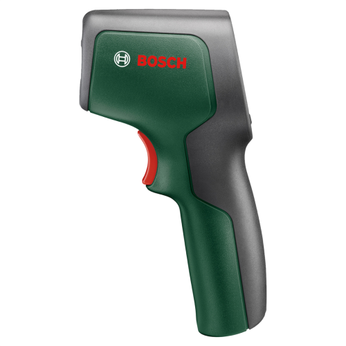 Pirometr UniversalTemp Bosch 0603683101, zwany też termodetektorem, jest przeznaczony do bezdotykowego pomiaru temperatury powierzchni. Sprawdzi się wewnątrz pomieszczeń, umożliwiając pomiar temperatury od -30 do +500 stopni Celsjusza. Urządzenie może wskazywać wyniki w dwóch jednostkach. Do wyboru są stopnie Celsjusza lub Fahrenheita. Przy pomiarze termodetektor wykorzystuje fale podczerwieni. To poręczny przyrząd, który przyda się przy wykrywaniu wad izolacji cieplnej czy kontrolowaniu wydajności ogrzewania.