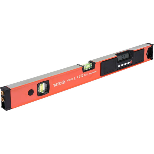 Poziomnica elektroniczna z laserem Yato YT-30400 przeznaczona jest do wyznaczania pionów i poziomów oraz umożliwia zwiększenie pomiaru aż o 20m, co poszerza zakres zastosowań narzędzia. Urządzenie posiada funkcję rzutowania punktu, linii ciągłej oraz linii przecinających pod kątem prostym, co zapewnia większą wygodę pracy. Dwie libelle pozwalają także na dokonywanie pomiarów tradycyjnie, bez użycia lasera. O wynikach pomiaru operatora powiadamia sygnalizacja dźwiękowa, a odczytać je może na czytelnym wyświetlaczu LCD.