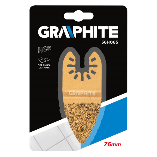 Płytka ścierna do urządzenia wielofunkcyjnego, do szlifowania ceramiki GRAPHITE (nr ref. 56H065) o średnicy 76 mm posiada nasyp z węglika wolframu. Pozwala na precyzyjne cięcie płytek ściennych po linii prostej oraz usuwanie fug przy pomocy multinarzędzia GRAPHITE.