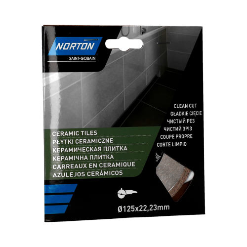 Tarcza diamentowa Norton CEE Ceramic Tiles 125x22,23 do szlifierki kątowej lub stołowej linia do cięcia materiałów ceramicznych, porcelany, terakoty oraz płytek z materiałów naturalnych (marmur, wapienie).