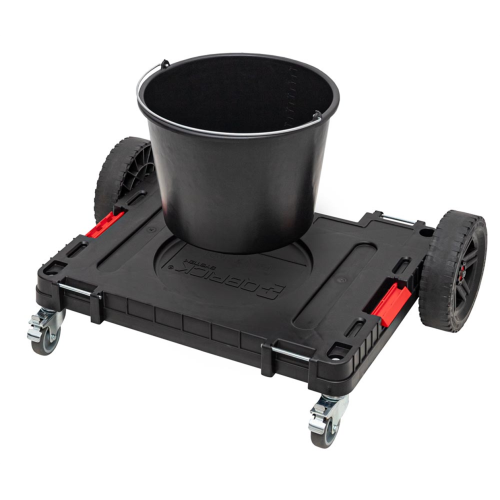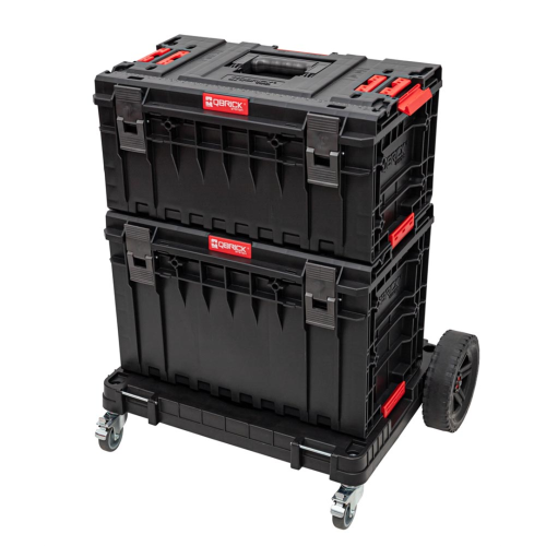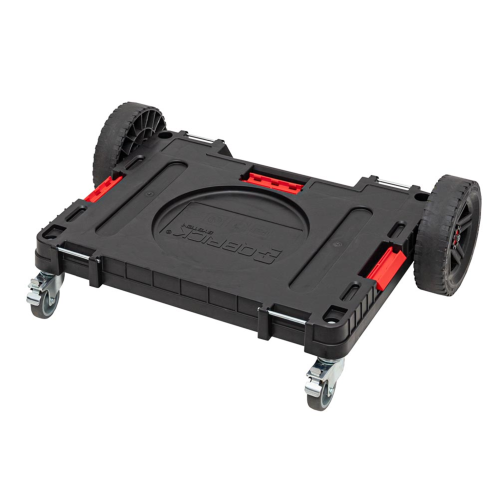 Pojawienie się na rynku polskich szuflad narzędziowych QS PRO DRAWER rozbudziło apetyty fachowców, chcących przenieść zalety szafek warsztatowych do ich miejsca pracy na placach budów. Znakomity produkt linii PRO ograniczony był pojemnością i możliwością przemieszczania go w trudnym terenie. Odpowiedzią na te potrzeby jest zatem udoskonalona platforma kołowa kompatybilna z wszystkimi elementami systemu ONE, z wyjątkiem organizerów L i M. Optymalne zastosowanie to kompletacja z dużymi szufladami narzędziowymi QS ONE DRAWER, co pozwala przenieść zalety ładu warsztatowych szafek w środek chaosu placu budowy. System skrzyń łączony trzema konektorami można bezpiecznie przechylić na duże koła w celu przemieszczenia się po schodach, przez krawężniki czy po grząskim gruncie. Jednocześnie po dotarciu na utwardzoną powierzchnię słupek można ustawić pionowo i swobodnie manewrować ciężkim setem bez obciążania ramion.