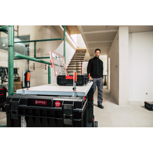 Modułowa skrzynia systemowa Qbrick ONE 350 TECHNIK w wersji 2.0 SKRQ350T2CZAPG001 została wzbogacona o uchwyty na tacki narzędziowe oraz miejsca na molety. Dzięki temu kufer QS ONE jest jeszcze bardziej funkcjonalny dzięki większym możliwościom personalizacji. Solidna pokrywa z szynami do mocowania materiału ściskami oraz optymalna przestrzeń wewnątrz to nieodłączne zalety modeli ONE 350. Dwie przegrody, w tym jedna z uchwytami na narzędzia ręczne, mogą być zamieniane z tackami narzędziowymi. Po wymianie szyn na komplet konektorów wersja pokrywy Technik może zostać zaadaptowana do mocowania skrzynek PRO z wyjątkiem szuflad i szerszych modeli PRO 600 i 700.