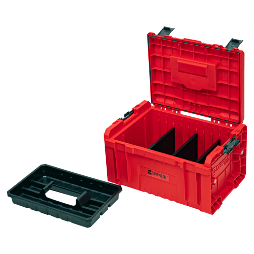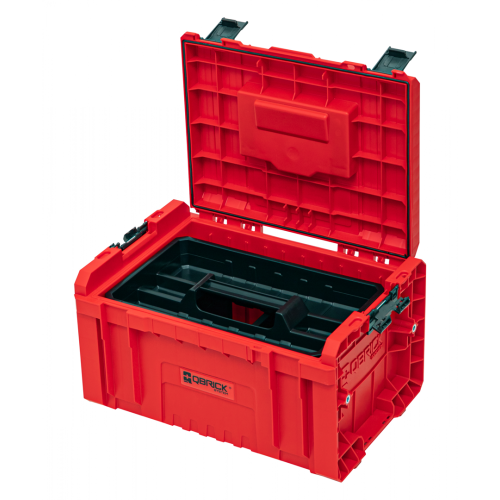Modułowa skrzynka narzędziowa PRO RED ULTRA HD ToolBox Qbrick System 2.0 SKRQTBPRO2CCZEPG001 jest wykonana z super wytrzymałego tworzywa RED. Sprawdza się idealnie jako walizka narzędziowa w rozbudowanym systemie skrzyń lub w kolumnie szuflad w warsztacie. Jest wyposażona w molety, dzięki którym można modyfikować ją do własnych potrzeb, np. poprzez przymocowanie szybkozłączek Custom Connectors Z258551PG0011. Wnętrze z trzema przestawianymi przegrodami i tacką narzędziową również można zoptymalizować, zaopatrując je w organizery Multi z linii PRO lub TWO.