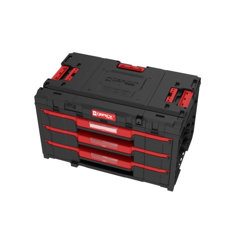Masywna konstrukcja bazuje na sprawdzonych rozwiązaniach Qbrick 2.0 takich jak grube żebrowania w strategicznych miejscach, stalowe prowadnice trzyczęściowe i solidne pokrywy pozwalające na stawanie na skrzyni. O ile sam korpus jest wykonany z polipropylenu uzyskanego w procesie recyklingu, to same szuflady i ich przegrody to ABS. Jest to sztywne i twarde tworzywo techniczne, które sprawia, że dno komory nie wybrzusza się pod dużym obciążeniem. To bezkompromisowe rozwiązanie sprawia, że nawet tańsza wersja ONE DRAWER BLACK spełnia wygórowane oczekiwania użytkowników co do funkcjonalności i niezawodności mobilnej szafki narzędziowej.