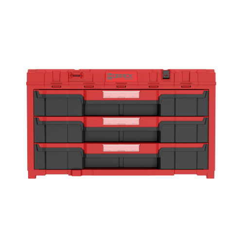 Modułowa szafka narzędziowa ONE DRAWER 3 TOOLBOX 2.0 Custom RED Ultra HD Qbrick System SKRQONED3CZEPG001 dopełnia ten największy system polskiego producenta profesjonalnych skrzyń narzędziowych. Szuflady to typ skrzynki, który był bardzo wyczekiwany przez użytkowników, gdyż daje możliwość łatwego dostępu do zawartości bez zdejmowania modułów przyłączonych do jej pokrywy. Stwarza to dużo nowych opcji organizacji narzędzi.