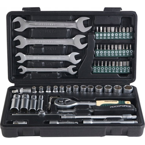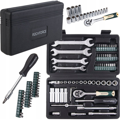 Nasadki w wielu rozmiarach, przegub, przedłużki, grzechotka, rozmaite bity, imbusy, klucze płaskie to tylko niektóre z elementów, które znajdziesz w zestawie od Rockforce. Wykorzystasz je w wielu zadaniach.