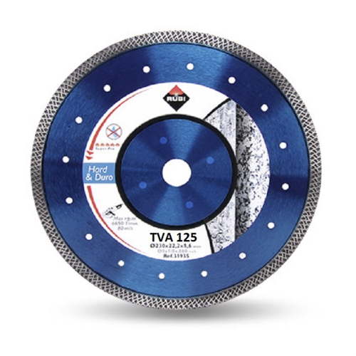 Tarcza diamentowa Rubi TVA 125 SUPERPRO do wykonywania precyzyjnych i szybkich cięć na sucho w twardych materiałach.