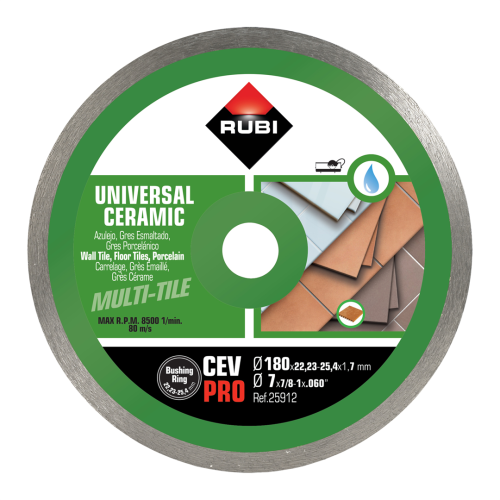Tarcza diamentowa, NA MOKRO Rubi C180/22,2mm sprawdzi się przy cięciu płytek każdego typu, jak np. płytki ścienne, terakoty, gres, gres porcelanowy itd.