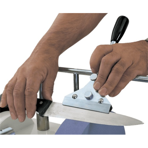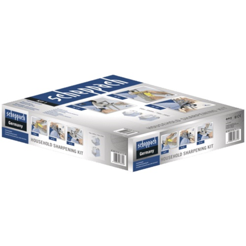 Zestaw osprzętu KIT1 Scheppach SCH7903200002 przeznaczony jest do szlifierki stołowej TIGER2500. Za jego pomocą użytkownik jest w stanie obrabiać siekiery o długości do 170mm, nożyce i sekatory, a także noże o długościach od 100 do 200mm.