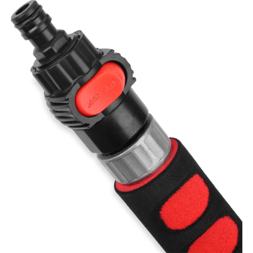 Produkt jest też wyposażony w uniwersalną szybkozłączkę do podpięcia węża ogrodowego 1/2” umożliwiającego doprowadzenie wody. Ma również zawór przepływu wody, dzięki czemu czyszczenie można łatwo rozpocząć oraz zakończyć w dowolnym momencie.