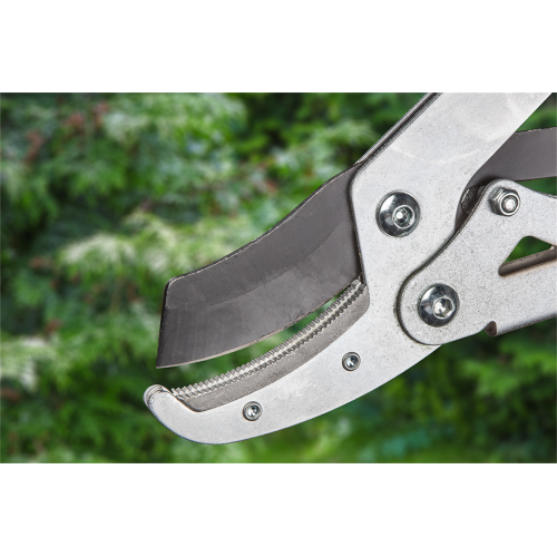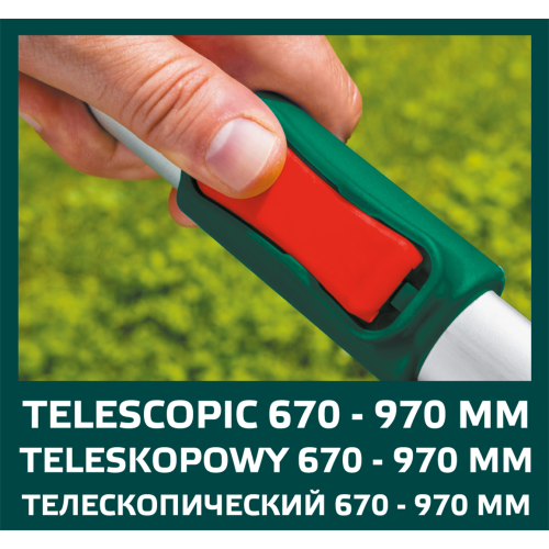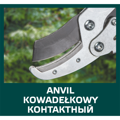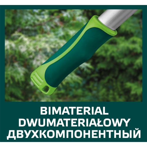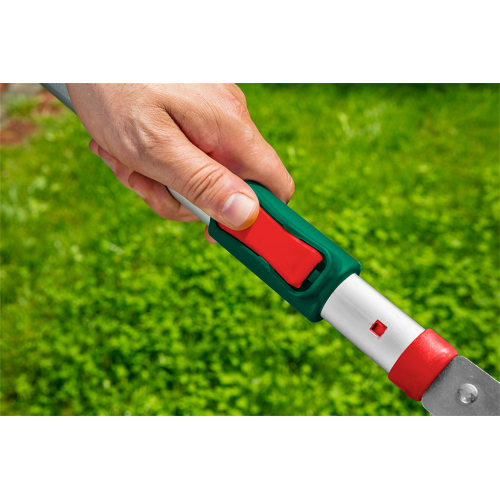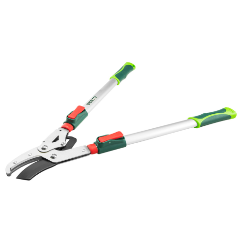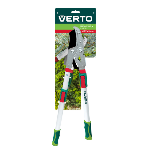 Sekator do gałęzi kowadełkowy teleskopowy VERTO (nr ref. 15G259) o długości 670 - 970 mm i średnicy cięcia do 45 mm. Przeznaczony do cięcia cienkich i grubych gałęzi. Ostrze pokryte powłoką teflonową, zapewniającą ochronę przed korozją. Dodatkowym atutem jest przekładnia zmniejszająca siłę potrzebną do cięcia o 30% oraz aluminiowe ramiona optymalizujące wagę narzędzia. Teleskopowe ramiona zwiększają zasięg pracy narzędziem. Ergonomiczny uchwyt pokryty antypoślizgowym materiałem zapewnia bezpieczeństwo i komfort podczas pracy.
