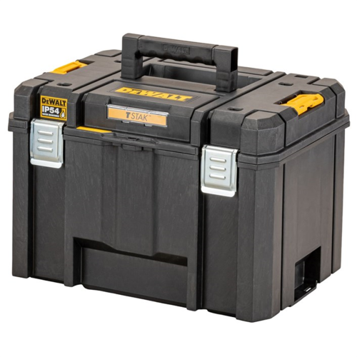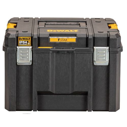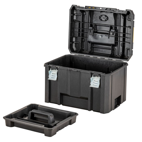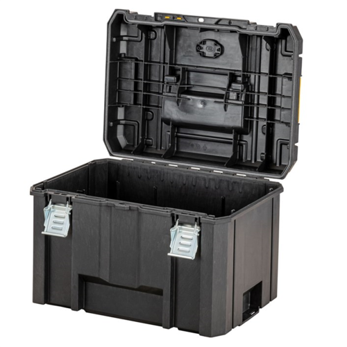 Skrzynia głębokaTStak 2.0 DeWalt DWST83346-1 posiada mocne zatrzaski przednie, dzięki którym ta nie otworzy się niespodziewanie — istnieje również możliwość dokupienia kłódki. Boczne zatrzaski wyposażone zostały w piny, za pomocą których operator może łączyć ze sobą skrzynię z innymi modułami TSTAK. Dzięki odporności na pył i wilgoć przenoszone elektronarzędzia i inne przedmioty chronione są przed wodą i pyłem, co zwiększa ich bezawaryjność. Operator może zamocować DeWalt Tracker (do kupienia osobno), który pozwala szybciej znaleźć skrzynię za pomocą Tool Connect. W zestawie znajduje się wewnętrzna półka, której zadaniem jest ułatwienie dostępu do najważniejszych narzędzi ręcznych oraz akcesoriów.