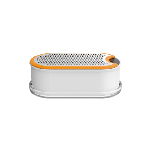 • Tarka z praktycznym pojemnikiem do łatwego ścierania sera, czekolady, przypraw, warzyw lub owoców, idealna dla osób o małych, jak i dużych dłoniach