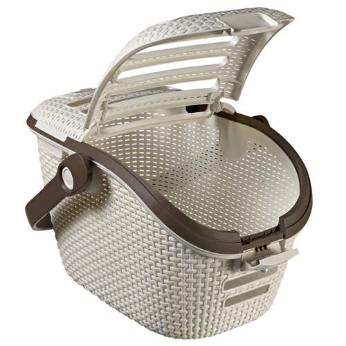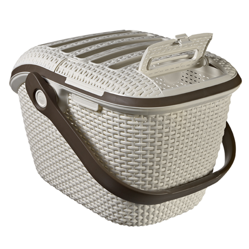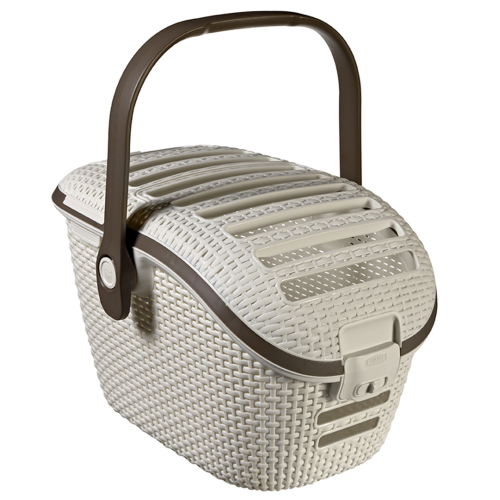 Obowiązkiem każdego właściciela psa lub kota jest dbanie o swojego pupila. W jaki sposób zatroszczyć się o bezpieczeństwo domowych zwierząt, kiedy konieczne jest przetransportowanie go np. do weterynarza? Idealnym rozwiązaniem będzie transporter dla zwierząt. Najwyższej klasy materiały, z których jest wykonany, podkreślają najwyższe standardy jakości. Produkt wyglądem przypomina rattan. Połączenie jasnego koloru z brązowymi wstawkami sprawia, że transporter wygląda bardzo stylowo. Dzięki niejednolitej strukturze zwierzę ma ciągły dostęp świeżego powietrza, a otwierana, górna klapa pozwala na głaskanie i karmienie zwierzęcia, bez konieczności jego wyciągania. Dno transportera jest jednolite, dzięki czemu wszelkie nieczystości nie wydostaną się na zewnątrz.