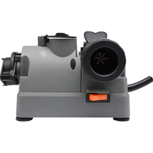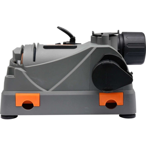 Naostrzenie wierteł przeprowadza się w inny, aczkolwiek także prosty sposób. Aby rozpocząć pracę, wiertło należy umieścić w odpowiednim uchwycie, wcześniej je rozchylając. Gdy wiertło znajduje się na swoim miejscu, szczęki można zacisnąć i ustawić średnicę trochę wyższą od średnicy wiertła za pomocą pokrętła uchwytu. Uchwyt wiertła trzeba teraz umieścić w gnieździe pozycjonowania wiertła, a jego wypusty wprowadzić do nacięć gniazda. W tym momencie operator musi podnieść zatrzask szczęk, powodując tym samych uchwycenie wiertła - ostrzony element należy obrócić w taki sposób, aby został on uchwycony w najwęższym miejsc. Pokrętło regulacyjne służy do ustalenia grubości warstwy, która ma zostać zeszlifowana podczas ostrzenia - w momencie, gdy użytkownik planuje zwykłe ostrzenie wiertła, wystarczy wybrać minimalną wartość, a jeżeli potrzebuje usunąć większą ilość materiału, może ten parametr dostosować, kręcąc pokrętłem zgodnie z kierunkiem strzałki. Aby ostrzenie przebiegało wydajnie, należy wiertło docisnąć do czoła trzpienia mocującego i unieruchomić wiertło w uchwycie poprzez dokręcanie pokrętła uchwytu zgodnie z ruchem wskazówek zegara. Po tym należy wysunąć uchwyt z wiertłem z gniazda pozycjonującego i podłączyć ostrzałkę do źródła zasilania. Po włączeniu modelu 734373 trzeba poczekać, aż jego obroty osiągną prędkość znamionową, odchylić pokrywę znajdującą się nad gniazdem ostrzenia wierteł i wprowadzić uchwyt z ostrzonym elementem do gniazda - wypusty uchwytu muszą trafić w nacięcia, aby praca była skuteczna. Gdy szlifowanie się rozpocznie, użytkownik musi poruszać wiertłem w jedną i drugą stronę przez około 5-10 sekund dociskając element do talerza szlifierskiego. Po zakończeniu szlifowania wystarczy wyjąć uchwyt z wiertłem z gniazda i wsadzić go od drugiej strony, aby wyszlifować drugą krawędź końcówki roboczej.
