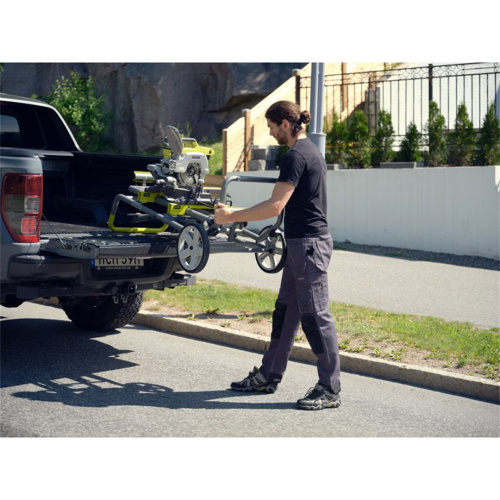 Stół do pilarki RLSW01 firmy Ryobi to idealny stół roboczy zarówno dla profesjonalistów, jak i majsterkowiczów. Stojak składany jest pionowo i został wyposażony w kółka transportowe ułatwiające przechowywanie w warsztatach, garażach lub bagażnikach. Ponadto stojak posiada blokadę kół i łatwy system podnoszenia.