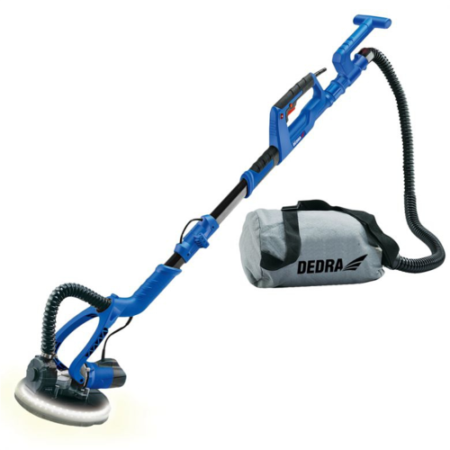 Szlifierka do gładzi DED7766 Dedra to urządzenie z innowacyjną turbiną ssącą umożliwiającą współpracę z workiem na pył. Takie rozwiązanie sprawia, że nie musimy korzystać z odkurzacza, aby pracować w czystych i bezpiecznych warunkach, szlifując ściany i sufit. Turbina zasysająca pył znajduje się przy talerzu szlifierskim, z którego odciąga nagromadzony urobek i poprzez wąż kieruje go do worka. Zastosowanie turbiny nadal pozwala na podłączenie odkurzacza do szlifierki. Wybór pomiędzy workiem, a odkurzaczem zależy od operatora narzędzia.