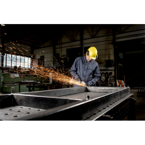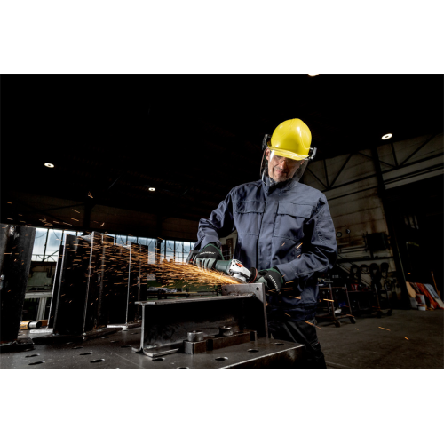 Szlifierka kątowa WPB 18 LT BL 11-125 Quick Metabo 613059840 została wyposażona w bezawaryjny silnik bezszczotkowy. Dzięki włącznikowi z funkcją czuwakową praca jest bezpieczna i ergonomiczna. Szybki układ hamowania jest w stanie zatrzymać tarczę już po 1s., co zapewnia większe bezpieczeństwo. Beznarzędziowa wymiana tarcz, dzięki systemowi M-Auick, usprawnia użytkowanie i pozwala zaoszczędzić czas. W zależności od pozycji roboczej możliwa jest zmiana pozycji obracanego o 90° akumulatora. Redukcja odrzutu podczas zablokowania się tarczy w obrabianym materiale zwiększa bezpieczeństwo pracy, gdyż model posiada sprzęgło przeciążeniowe Metabo S-automatic. Zabezpieczenie przed ponownym uruchomieniem sprawia, że narzędzie nie włączy się samo przy zamocowaniu akumulatora. Silnik jest dodatkowo chroniony przed większymi cząstkami zanieczyszczeń, dzięki wbudowanemu filtrowi przeciwpyłowemu.
