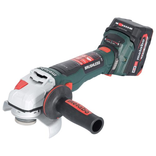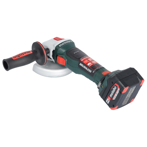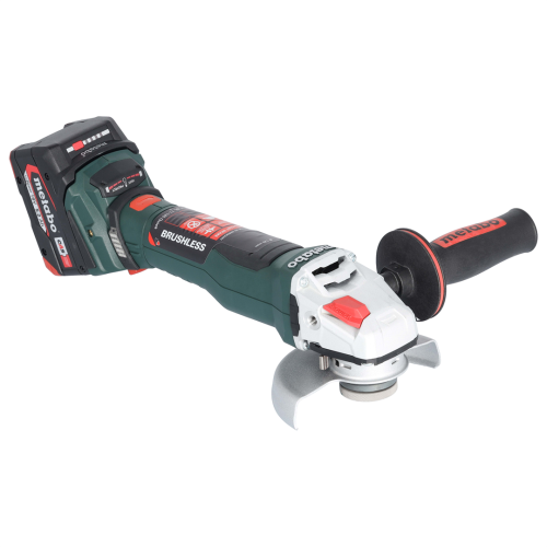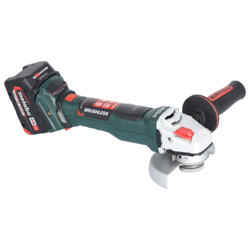 Szlifierka kątowa WB 18 LT BL 11-125 Quick Metabo 613054650 z bezawaryjnym silnikiem bezszczotkowym dla większej wytrzymałości. Zastosowanie szybkiego układu hamowania zatrzymuje tarczę w zaledwie 1s, zapewniając wysoki poziom bezpieczeństwa. Tarcze wymienia się beznarzędziowo, dzięki mechanizmowi M-Quick, co wprowadza oszczędność czasu i wygodę użytkowania. Możliwość przestawiania pozycji akumulatora co 90° użytkownik może pracować w komfortowych warunkach bez względu na pozycję roboczą. Sprzęgło przeciążeniowe Metabo S-autoamtic wprowadza ochronę przed odrzutem, gdy tarcza zablokuje się w obrabianym materiale. Elektroniczne zabezpieczenie przeciążeniowe podkreśla niezawodność urządzenia. Funkcja łagodnego rozruchu redukuje rwanie i drgania przy uruchamianiu modelu, co przekłada się na wygodę pracy. Dzięki zabezpieczeniu przed ponownym uruchomieniem narzędzie nie włączy się samo po zainstalowaniu akumulatora. Wbudowany filtr przeciwpyłowy chroni silnik przed dużymi cząstkami brudu.