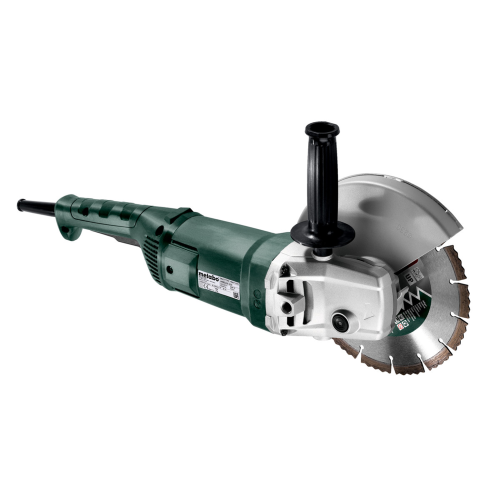 Sieciowa szlifierka kątowa WE 2000-230 Metabo 606432000 z ograniczeniem prądu rozruchowego pozwala na płynne rozpoczęcie pracy bez ryzyka przeciążenia sieci elektrycznej. Duża moc silnika wspomagana elektroniką płynnie rozpędzającą tarcze to także dłuższa żywotność przekładni kątowej i większy komfort pracy z powodu braku szarpnięcia. Inny element zwiększający wygodę operatora to obrotowa rękojeść główna. To, plus rękojeść pomocnicza z możliwością zamocowania w trzech miejscach zapewniają maksymalnie ergonomiczną pozycję w czasie długotrwałego szlifowania lub cięcia. Znakomite osiągi i jakość wykonania maszyny w stosunku do ceny to charakterystyczna cecha kątówek klasy economy.