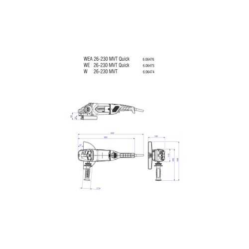 - Model WE 26-230 MVT Quick posiada zabezpieczenie wyłączające silnik w momencie zablokowania się tarczy, tak aby maksymalnie zredukować towarzyszące temu zjawisko odrzutu