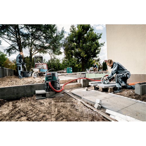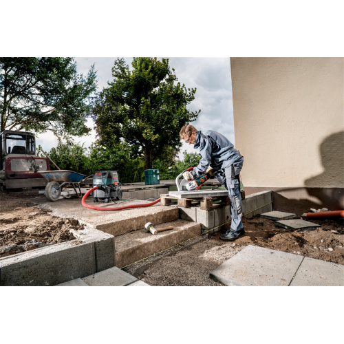 - Urządzenie posiada zintegrowany system tłumienia drgań oraz rękojeść boczną z tłumieniem drgań (Metabo VibraTech), co znacznie obniża poziom szkodliwych wibracji przenoszonych na operatora