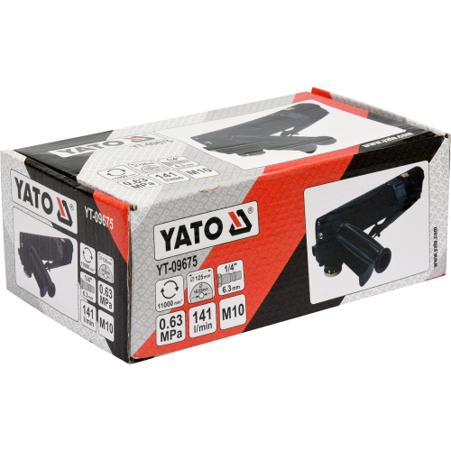 Szlifierka kątowa pneumatyczna Yato YT-09675 to profesjonalne narzędzie pneumatyczne przeznaczone do pracy w warunkach warsztatowych, jak i przemysłowych. Szlifierka obsługuje tarcze o średnicy 125mm.
