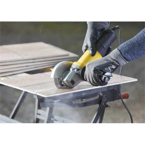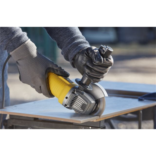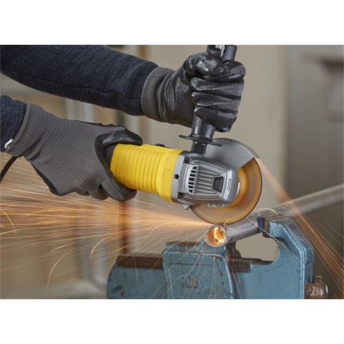 Sieciowa szlifierka kątowa FMEG210 Stanley FatMax ma osłonę na tarcze 115mm, przez co dedykowana jest do bardziej detalicznych prac w blacharce lub glazurnictwie. Sprawdzi się również na budowie do przycinania prętów lub fazowania np. dachówek. Mała osłona to również nieco mniejsza masa i manewrowość w ciasnych przestrzeniach. Duża maksymalna prędkość obrotowa sprawdzi się przy pracach koronkami diamentowymi. Wąski korpus jak na maszynę z silnikiem 850W, boczna rękojeść dodatkowa i 3m kabla pozytywnie wpływają na ergonomię pracy. Schowek na klucz dwutrzpieniowy rozwiązuje problem wiecznego poszukiwania klucza i chałupniczego luzowania nakrętki. Profesjonalny sprzęt dobrze pracujący również z osłoną 125mm.
